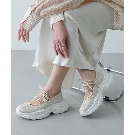 昨年大好評をいただいたスニーカーが、今年も登場。程よい硬さのソールは歩きやすく、厚底ながらも軽量なため、疲れにくいのが魅力です。シンプルなデザインで、パンツスタイルからスカート、ワンピースまで、幅広いコーディネートにマッチ。トレンド感と歩きやすさを両立した、デイリーユースにぴったりの一足です。