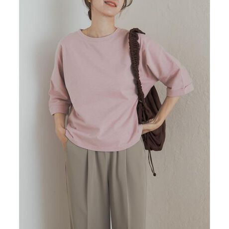 ホワイトに続いて2着目の購入です。オンオフ使えますが、カジュアルな装いで着たいと思って買いました。くすみピンクなので落ち着いた色味です。顔映りが優しい印象です。ドライっぽい生地感で、袖が七分丈なので長い時季着られると思います。最初独特な匂いがしますがお洗濯で気にならなくなります。