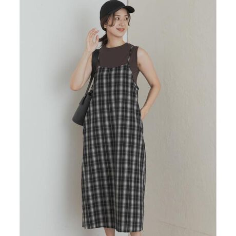 チェック柄が新鮮な、大人の抜け感を演出するストレートシルエットのキャミワンピース