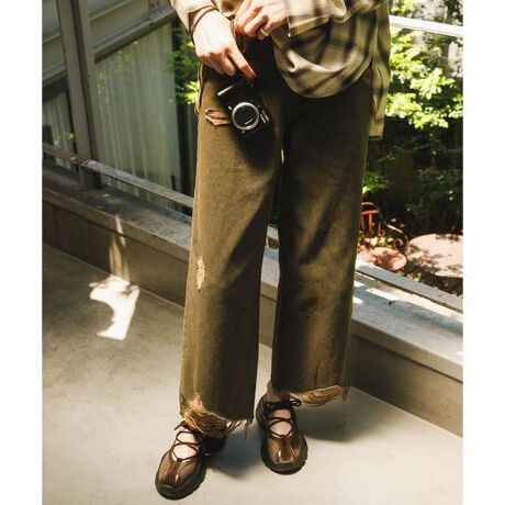 【クラッシュ加工が目を引く、ダメージストレートデニム】