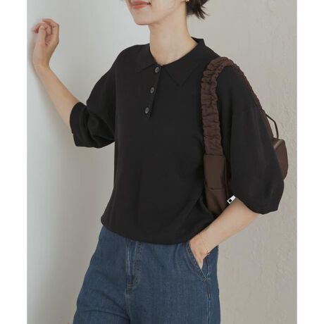麻混素材でさらりと快適、女性らしい抜け感を演出するニットポロシャツ