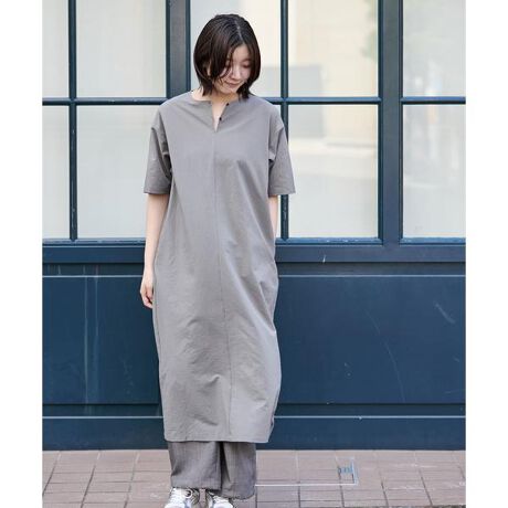 特殊原糸と織物構造をベースに、独自の加工技術により「通気孔」を発現させた、東レ(株)の快適高通気素材「DotAir」を使用。吸水加工・シワ加工も施されています。夏のアクティビティシーンはもちろんのこと、真夏のタウンユースにも活躍するワンピース。前ループボタン明きでストンとしたシルエットが気軽に着用出来るデザインになっています。後ウエストのスピンドルでシルエットの変化も楽しめます。EKALオリジナルコードの衿吊りとプリントネーム、ピスネームが施されています。