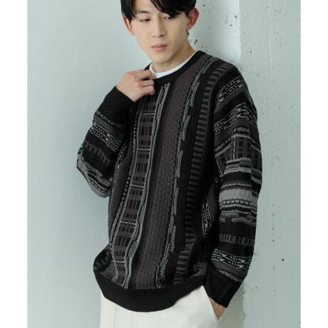 マルチジャカード クルーネックニット