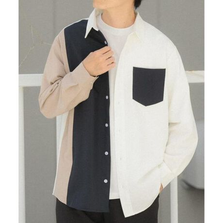 異なるカラーで切替えたバーティカルスイッチシャツ。