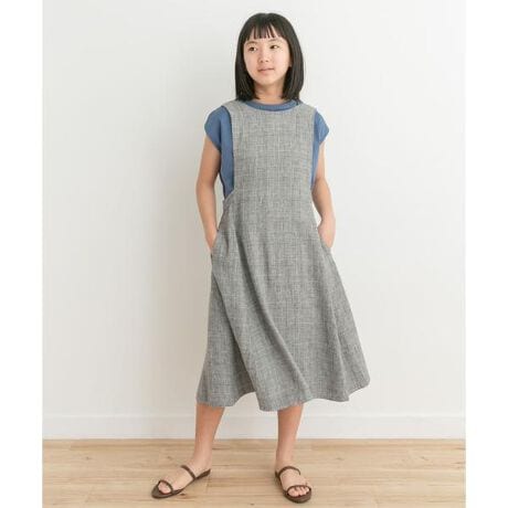 リネンレーヨン生地を使った、夏まで着回せるエプロン風ジャンパースカート。