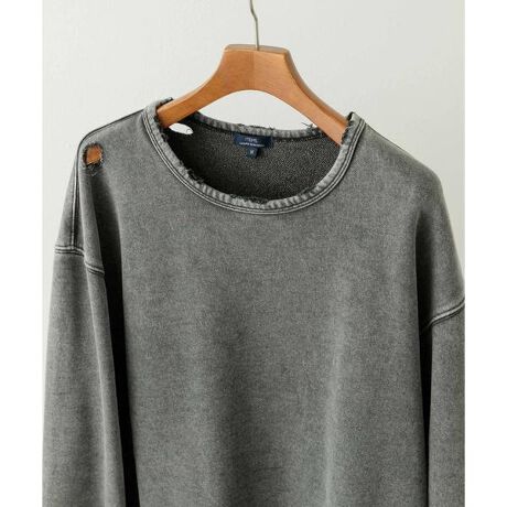 トレンドライクなダメージ加工を施した裏毛クルーネックスウェット