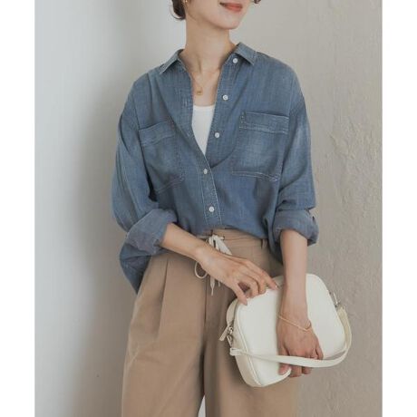 清涼感のあるシアーデニム素材を使用したシンプルなシャツは、程よい透け感と軽やかさが魅力。