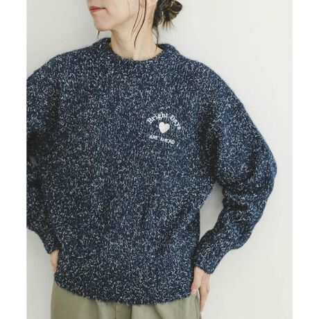 今シーズン注目のハートデザインを刺繍したトレンドムードのあるワンポイントが特徴のニット。メランジのような風合いの生地で表情のある1着です。ゆるっとしたシルエットでストレスフリーな着心地も魅力ですよ◎