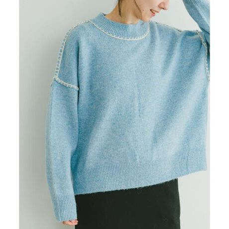 ネック、ショルダー、バック部分にそれぞれステッチをあしらい、レトロライクなディテールにこだわったクルーネックニット。柔らかくふわふわとした着心地と、体のラインを拾わないゆったりとしたシルエットが魅力。配色の効いたステッチがコーディネートにアクセントを加えてくれますよ◎