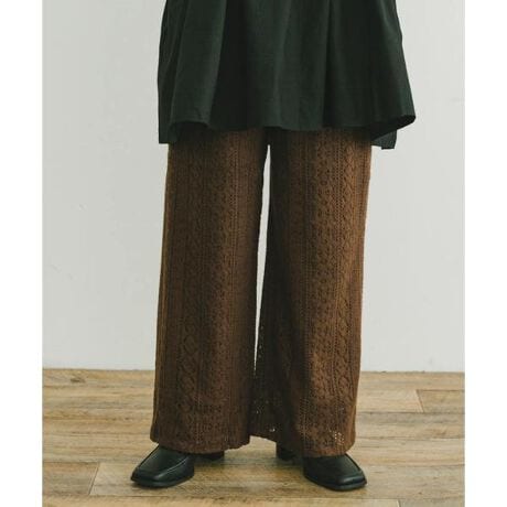 ふんわり起毛したシーズンムードのあるレース生地で仕立てたイージーパンツ。ウエストゴムのストレスフリーな着心地と、多彩なコーデにマッチする着回しやすさが魅力◎カットソーやスウェット、シャツ・ブラウスとの組み合わせはもちろん、ワンピースに合わせてこなれ感のあるスタイリングもお楽しみいただけます♪
