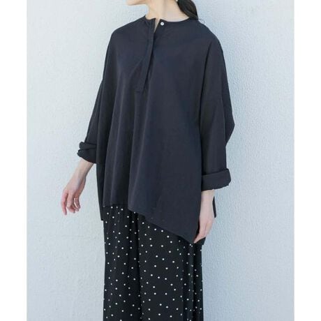 コットンボイルが軽やかで着心地の良いアイテム。ほんのりと透け感がある薄手の生地を採用。重たい印象にはならず、スタイリング次第で長く着まわせそうです。全体的にゆったりとしているので、肌に張り付きにくく風通しの良いデザイン。首まわりはコンパクトに仕上げ、ボタンの開け具合で抜け感をお楽しみください。同素材でチュニックもご用意しています。