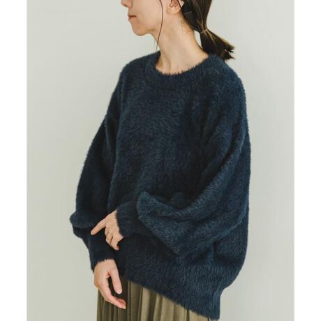 柔らかくふわふわとした毛足のシャギー生地で仕立てたクルーネックデザインのニット。程よい落ち感が大人っぽい着こなしを叶えてくれます。レディーな印象で着用していただけるので、スカートスタイルはもちろん、ボトムと合わせてハンサムさをプラスしても◎シャツやワンピースに重ねた着用もオススメですよ。