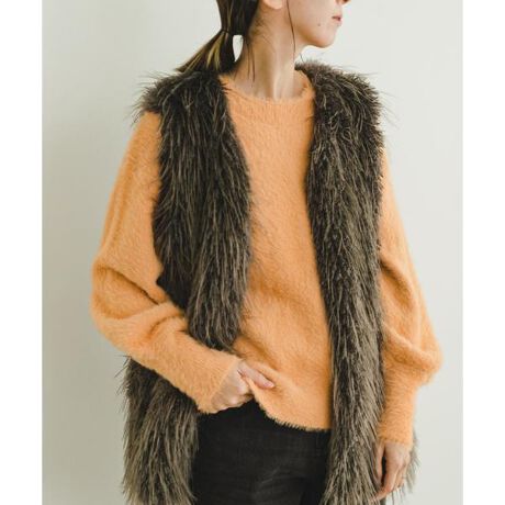 柔らかくふわふわとした毛足のシャギー生地で仕立てたクルーネックデザインのニット。程よい落ち感が大人っぽい着こなしを叶えてくれます。レディーな印象で着用していただけるので、スカートスタイルはもちろん、ボトムと合わせてハンサムさをプラスしても◎シャツやワンピースに重ねた着用もオススメですよ。