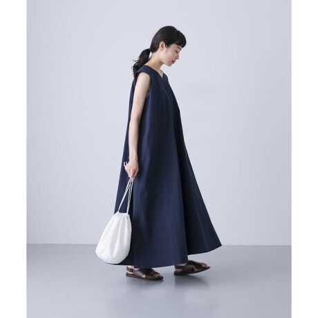 風通しが良く簡単にスタイリングが決まるワンピース。暑い時期に頼もしいアイテムです。首元はコンパクトに仕上げ控えめなVネックが顔まわりを上品に演出。ロング丈にすることで、ノースリーブとのバランスが取れています。シンプルな中にデザイナーのこだわりを感じられる一品。近江晒加工が施された風合い豊かな生地を贅沢に使用。Aラインのシルエットと素材感が相まって程よいドレープを生みます。ナチュラルだけど、どこかエレガント。大人のためのワンピースをぜひお楽しみください。