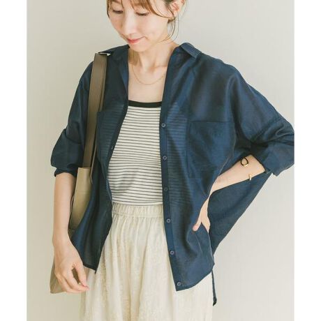 軽やかな透け感が魅力のシアーシャツ。 スキッパーデザインが顔まわりをすっきりと見せ、羽織るだけで涼しげな印象に。さらに、内側のボタンでとめる位置を変えれば、カシュクール風にもなる2WAY仕様。雰囲気を変えてコーディネートを楽しめます。着まわしやすいホワイト、爽やかで夏らしいブルー、シックで上品な印象のネイビーの3色展開です。