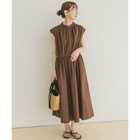 ギャザーをたっぷりと寄せたふんわりシルエットに、ほんのりモードなバンドカラー。フェミニンさと上品さを兼ね備えた一枚は、着るだけで様になる万能アイテム。肩にかかる絶妙なノースリーブは、気になる二の腕をやさしくカバーしながら、涼しげな抜け感も演出してくれます。きれい色から落ち着いた定番色まで、選べる3色展開。軽やかな生地で着心地も快適。洗濯機で洗えるのもうれしいポイントです。