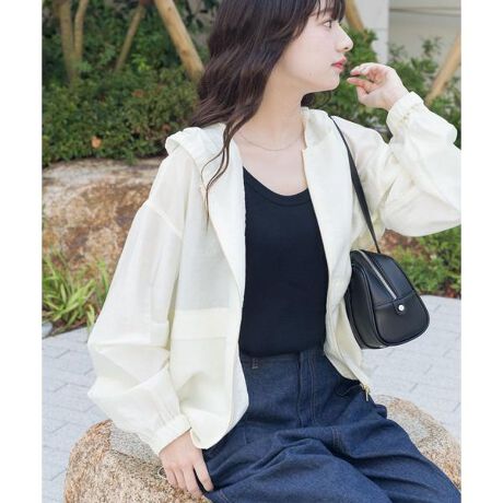 しなやかなシアー素材が魅力のフードブルゾンは、軽やかで通気性も良く、夏から秋にかけて長く活躍する一枚。程よい透け感がカジュアルすぎず、レディライクな雰囲気をプラス。さらっと羽織るだけでこなれ感が出るので、デイリーからお出かけまで幅広いシーンに。パンツにもスカートにも合わせやすい、着回し力抜群のライトアウターです。