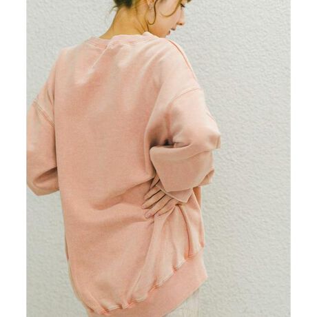 ヴィンテージムードのある独特な色落ち加工が今っぽい着こなしを叶えるオーバーサイズのスウェット。モコモコとした裏起毛デザインで防寒対策もバッチリな1着。メンズライクなゆったりシルエットながら、前後の裾の長さに変化を加えた丸みのある女性らしいディテールがポイントです。