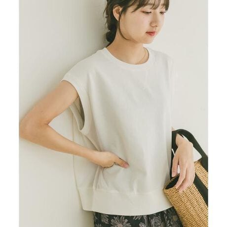 カジュアルな裏毛素材ながら、コンパクトなシルエットとミニマルなデザインで子どもっぽくならず、大人カジュアルに着こなせるノースリーブベスト。肩のラインをさりげなくカバーするバランスで、1枚ではもちろん、シャツやTシャツとのレイヤードにもおすすめ。季節の変わり目にも重宝する、着回し力の高いアイテムです。パンツにもスカートにも合わせやすく、抜け感のある旬コーデが完成します。