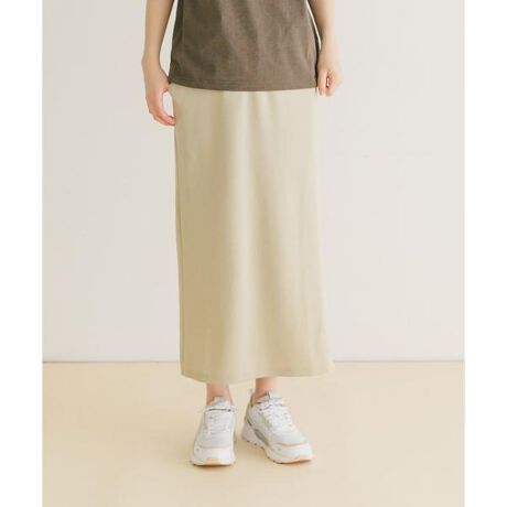 ほどよいハリ感と伸縮性を兼ね備えたポンチ素材を使用したストレートスカートは、体のラインを拾いにくく、すっきりとしたきれいなシルエットを演出。ストレッチが効いているので動きやすく、デイリーにもお仕事スタイルにもぴったり。トップスを選ばず着回せるシンプルさで、1枚あると頼れる優秀スカートです。
