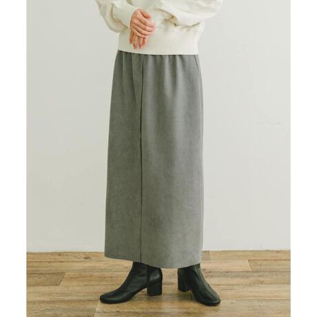 腰回りからまっすく落ちるペンシルシルエットのタイトスカート。シンプルでありながらモード感も持ち合せており、クール派も穿きやすい1本。フェイクスエード素材で高級感も含みつつ、トップスに悩まないNEWフェイスなベーシックスカートです。