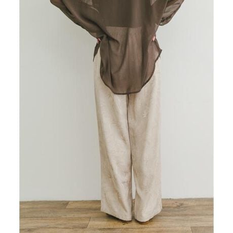 高級感あふれるサテンジャガード素材が魅力のイージーパンツ。ウエストゴム仕様でリラックスした履き心地を実現しながら、繊細な模様と深みのあるカラーで華やかさをプラス。シンプルなトップスやニットと合わせるだけで、季節感のあるおしゃれなスタイリングが完成します。デイリーユースからちょっとしたお出かけまで、幅広く活躍する一枚です。