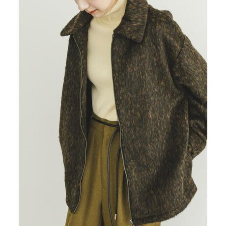 大人っぽさ漂う落ち着いたミックスカラーで仕立てたジップジャケット。毛足の長いシャギー素材がシーズンムードのあるスタイリングにアップデートしてくれます。ゆとりのある着心地なので、厚手のスウェットやニットを重ねてもごわつかず着用していただけるのも魅力です◎