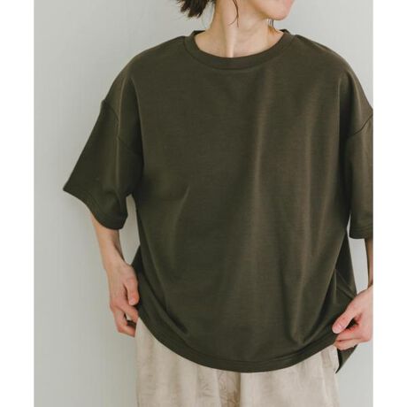 ポリエステル61%、綿34%、ポリウレタン5%の絶妙なブレンド素材で、さらっと快適な着心地を叶えるビッグシルエットの半袖Tシャツ。程よいハリ感があり、体のラインを拾いにくいので、気になる部分を自然にカバーしてくれます。シワになりにくく、お手入れもラクちん。忙しい朝もコーデに悩まない、頼れる1枚です。カラーは、どんなコーデにも馴染むオートミール、華やかで顔まわりが明るくなるイエロー、落ち着いた上品な印象のブラウンの3色展開です。