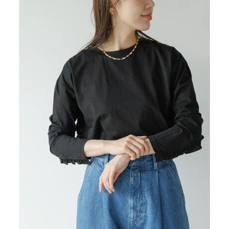 背中から袖の後ろ側、脇に沿ってミニフリルを施したカットソー。