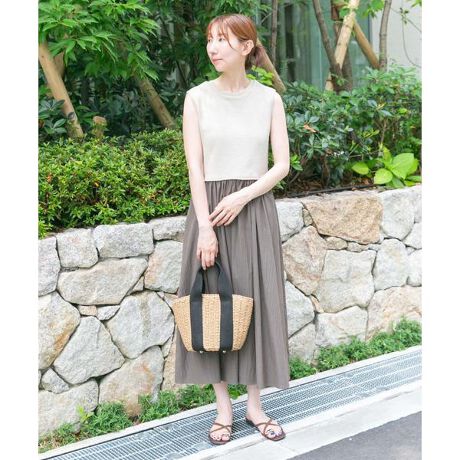 リブトップスとハリ感のあるスカートを組み合わせたノースリーブワンピースは、カジュアルさの中にほんのり光沢感があり、きれいめスタイルにもマッチするデザイン。洗濯機洗い可能でデイリー使いにもぴったり。1枚で着映えしながらも、ジャケットやカーディガンを羽織ればオフィスカジュアルにも活躍する、大人に嬉しい万能ワンピースです。