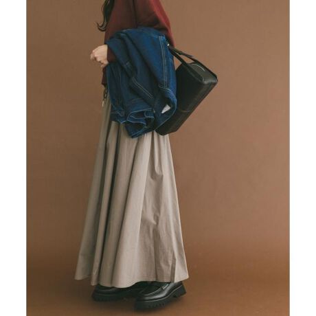程よい張り感のある綿混素材で、ふんわり広がるシルエットが上品フェミニンなウエストギャザースカート。しっかりと長さがあり、落ち着いたカラー展開で大人っぽく仕上がります。ウエストはドローストリング仕様でフィット感の調整がしやすく、カジュアルにもきれいめにも着回し可能。オールシーズン活躍できる万能スカートです。