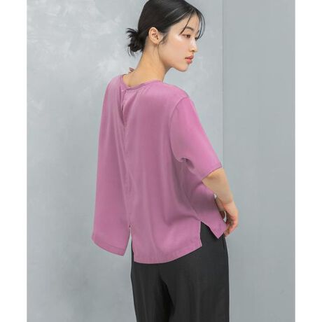 さりげない光沢感が上品な印象を演出するサテンブラウス。シンプルなデザインながらも、サテン生地の上質感にTシャツのようなシルエットが抜け感をプラスし、さらりと一枚で合わせても着映えが叶います。UVカット機能付きなのも嬉しいポイント◎スラックスなどでオンタイムにはもちろん、ハーフパンツやデニムなどで大人カジュアルなスタイリングもお勧めです。