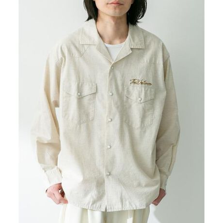 杢調のシャンブレー生地を使用し、胸元にワンポイント刺繍を施した非常に清涼感のあるウエスタンシャツ。