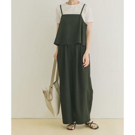 キャミソールとパンツ、リブカットソーのインナーがセットになった、スタイリング要らずのセットアップ。セットで着るだけでコーディネートが決まり、もちろんそれぞれ単品使いもできる着回し力の高いアイテムです。キャミソールとパンツは、落ち感のあるなめらかな素材感で、リラックスした着心地ながらも大人っぽい印象に。インナーは程よくフィットするリブ仕様で、レイヤードスタイルをバランス良く引き立ててくれます。ホワイト×ブラックと、シックなブラック×ブラウンの2色展開。
