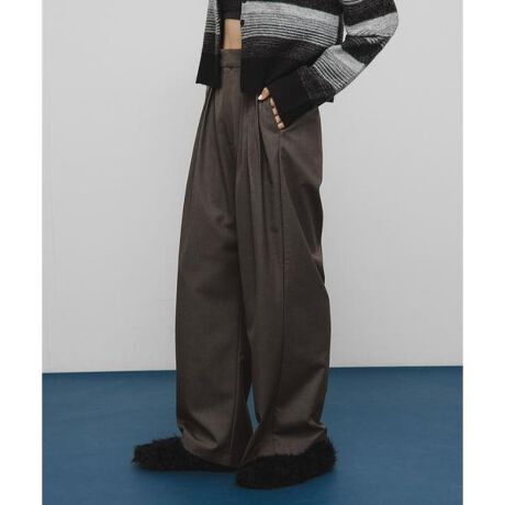 フロントのタックデザインがアクセントになったスラックス。さらっときれいめな素材を使用しているので様々なシーンに活躍します。程よくゆったりとしたヒップながらも、たっぷりと入ったタックが腰回りをカバーし、すっきりと見せます。身長別で選べる2サイズ展開になっております。