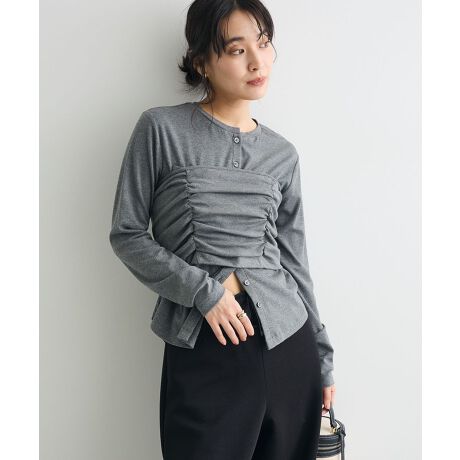 カーディガンとビスチェをレイヤードしたデザインが目を引くセットアイテム。