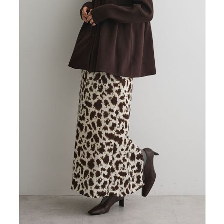 今季注目のヒョウ柄を、落ち着いた色合いで仕上げたIラインスカート。