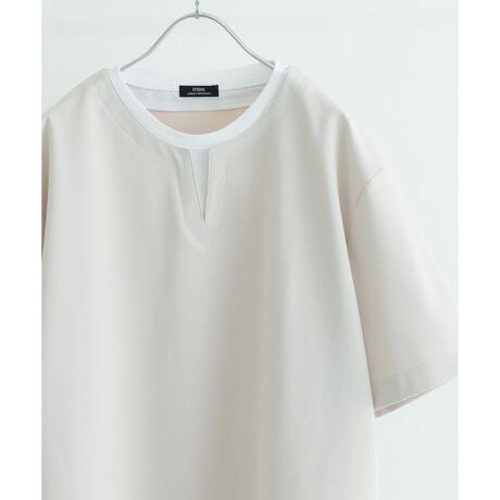 気軽にレイヤードスタイルを楽しめるフェイクレイヤードキーネックTシャツ。