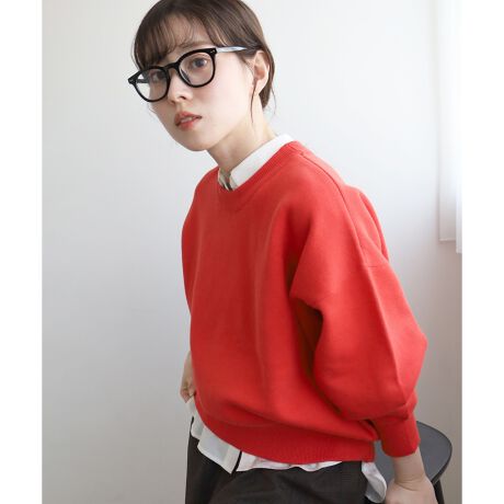 [型番:3558029203]《WEB限定アイテム》スウェット感覚で着用できるニットトップスが登場肉厚なしっかりとしたニット地で、素肌に着ても心地よいコットン混素材で仕上げ秋始めから長くお使いいただけます。スウェットよりどこかキレイめに仕上がるのも嬉しいポイント。スカートでもパンツでも合わせやすい万能アイテムです。