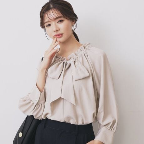 ・衿の大きめのフリルボウタイがポイントのブラウスです。