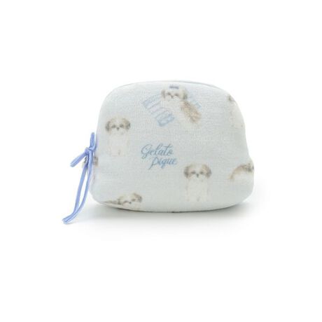 キュートなシーズーを描いたウェアシリーズと連動した小物シリーズです。シーズーのふんわり感をイメージしたパイル生地に、色々なポーズのシーズーの絵柄とロゴをプリントしたティッシュポーチ。引手には、シーズーが頭に付けているベロアリボンをあしらいました。背面にティッシュケースが付いたタイプで、コンパクトな見た目ながら基本のメイクアイテムがしっかり収納できるサイズ感。毎日のコスメポーチや旅行時の小物収納にもおすすめです。同シリーズのウェアや雑貨とコーディネートしてお楽しみください。