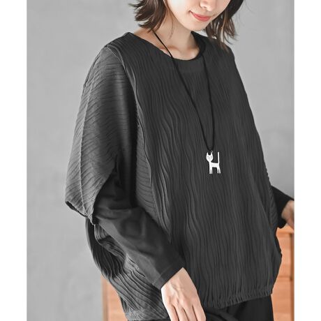 [型番:0240900165]★2025/AW NEW★すぐにコーデが楽しめるインナー付きトップスインナーがセットになった便利なアンサンブル。ウェーブのかかったジャガードカットソーが大人っぽい雰囲気を演出します。ゆったり着られるドルマンシルエットでリラクシーに◎。インナーはシンプルなロンTで他コーデでも着まわせます。カジュアルからきれいめまで幅広くご利用いただけるアイテム。裏地なし伸縮性あり薄手洗濯:洗濯機使用可(ネット使用)
