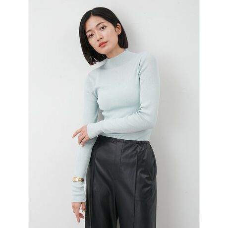 『Mila Owen』の定番人気アイテム、ハイネックのシアーリブニット。