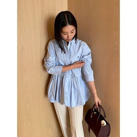 <b>【人気のバルーンペプラムシャツを、今季らしいボタンダウン仕様に。こなれた雰囲気が楽しめるプレッピーな一枚】</b>