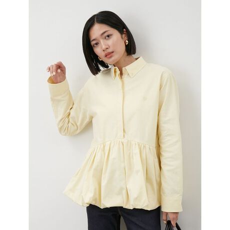 <b>【人気のバルーンペプラムシャツを、今季らしいボタンダウン仕様に。こなれた雰囲気が楽しめるプレッピーな一枚】</b>