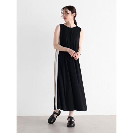 綺麗なAラインシルエットが魅力のノースリーブワンピース。