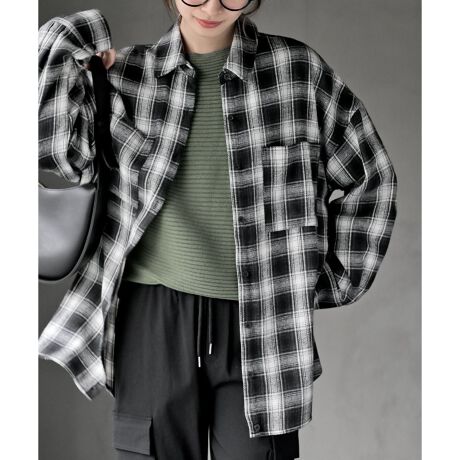 秋冬のスタイリングにあると便利なチェックのフランネルシャツ。