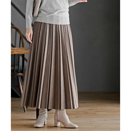 立体的なプリーツが美しいシルエットを描くスウェードスカート