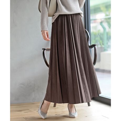 立体的なプリーツが美しいシルエットを描くスウェードスカート