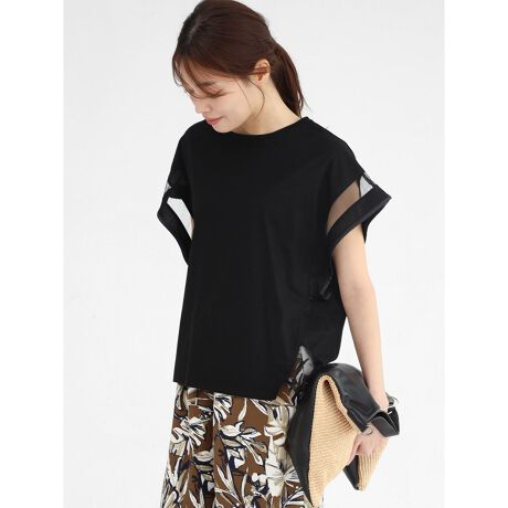 袖口と裾にチュール素材をドッキングしたデザインカットソー。